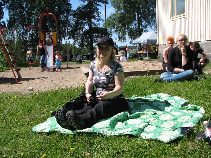 Helin kanssa jälleen liikenteessä, istuskeltiin nurmella semmosen muutaman kymmenen teini-ikäisen seassa.. ;-D No, vaikkei häppeningin suosio ollut kovinkaan valtaisa, musiikki ja pyttipannu olivat hyvää. :-D